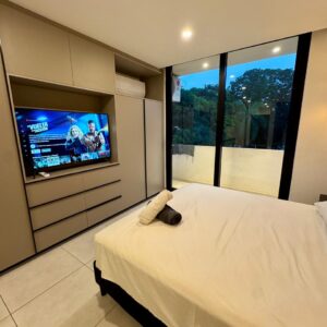 Vive la experiencia POX en este elegante monoambiente ubicado en el edificio Stratto, en la zona más exclusiva y segura de Santa Cruz. Diseñado para viajeros que buscan comodidad, estilo y ubicación estratégica, este espacio es ideal para estadías de negocios o escapadas de fin de semana.